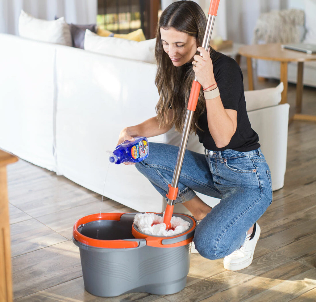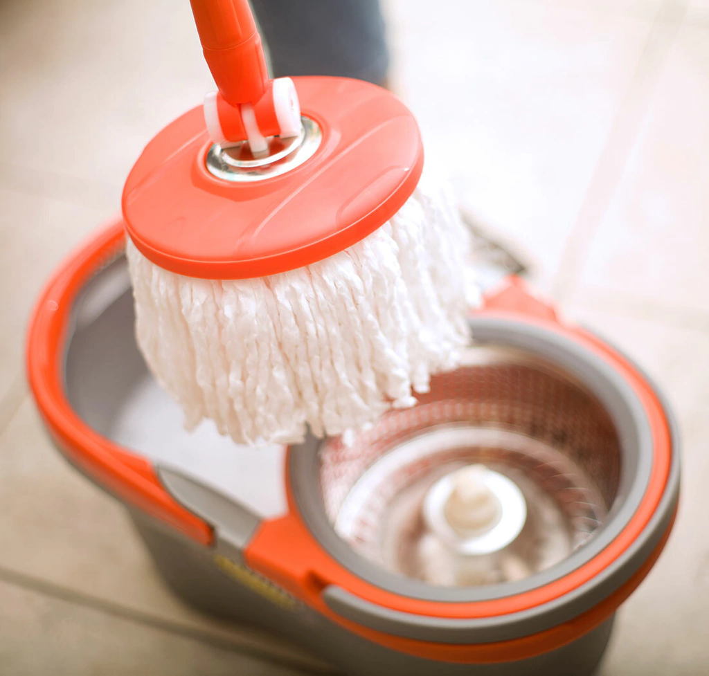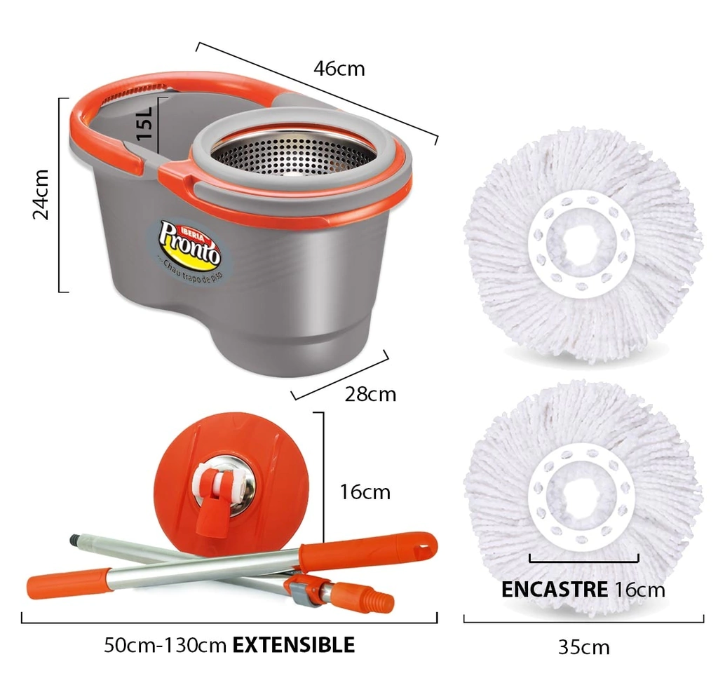 Ventajas: Contiene un cabo de acero inoxidable resistente. Balde con boca ancha para mejor entrada y salida de la mopa. Sistema de enjuague y escurrido por centrifugado suave y silencioso. Tambor centrífugo extraíble de acero inoxidable para mejorar la limpieza del balde. Y una exclusiva traba en el cabo fácil y práctica para activar el sistema de escurrido y enjuague por centrifugado. ¡Además las mopas de microfibra incluidas son lavables en lavarropas y se pueden comprar repuestos!